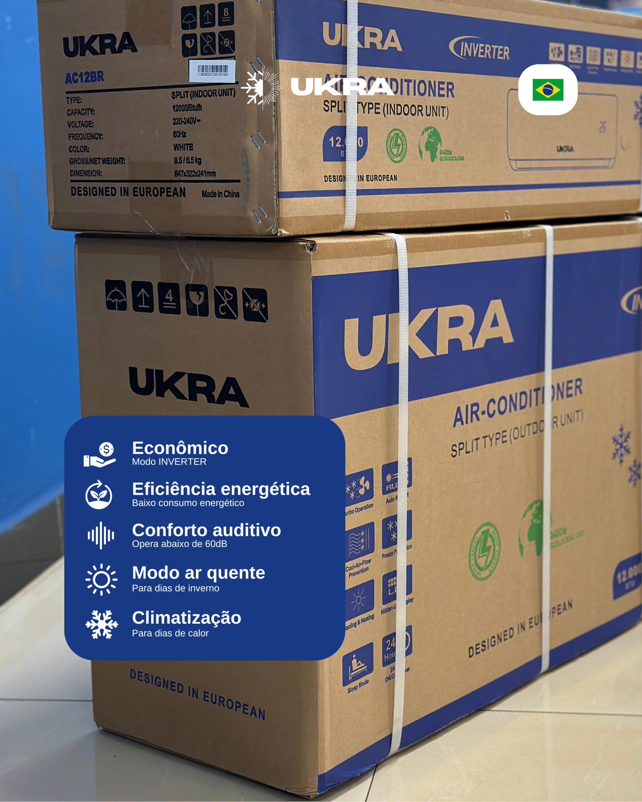 El Aire Acondicionado UKRA de 12.000 BTU combina potencia, eficiencia y confort para climatizar tus espacios con la máxima comodidad. Diseñado con tecnología moderna, garantiza un enfriamiento rápido, silencioso y de bajo consumo energético, ideal para uso residencial o comercial.